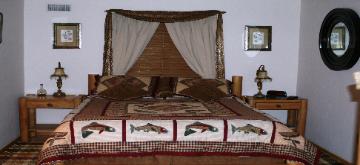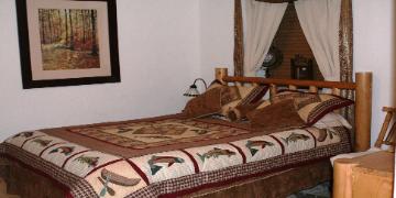 | Queen beds, log furnishings, satellite TV, Wi-Fi internet and your own private bathroom. |